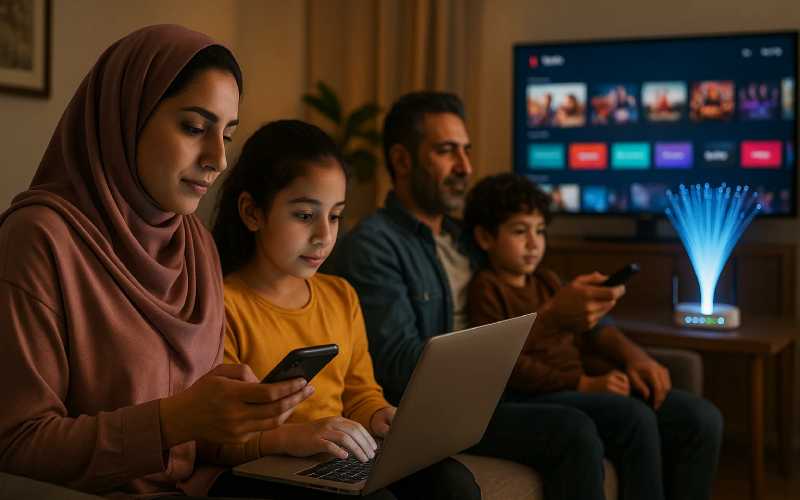 - پشتیبانی از چندین دستگاه متصل به اینترنت: اینترنت فیبر نوری میتواند تعداد زیادی دستگاه را بهطور همزمان پشتیبانی کند، بدون اینکه از سرعت یا کیفیت اتصال کاسته شود. این ویژگی برای خانوارهایی که از چندین دستگاه بهطور همزمان استفاده میکنند یا برای کسبوکارهایی که از چندین سیستم آنلاین استفاده میکنند، بسیار مهم است.